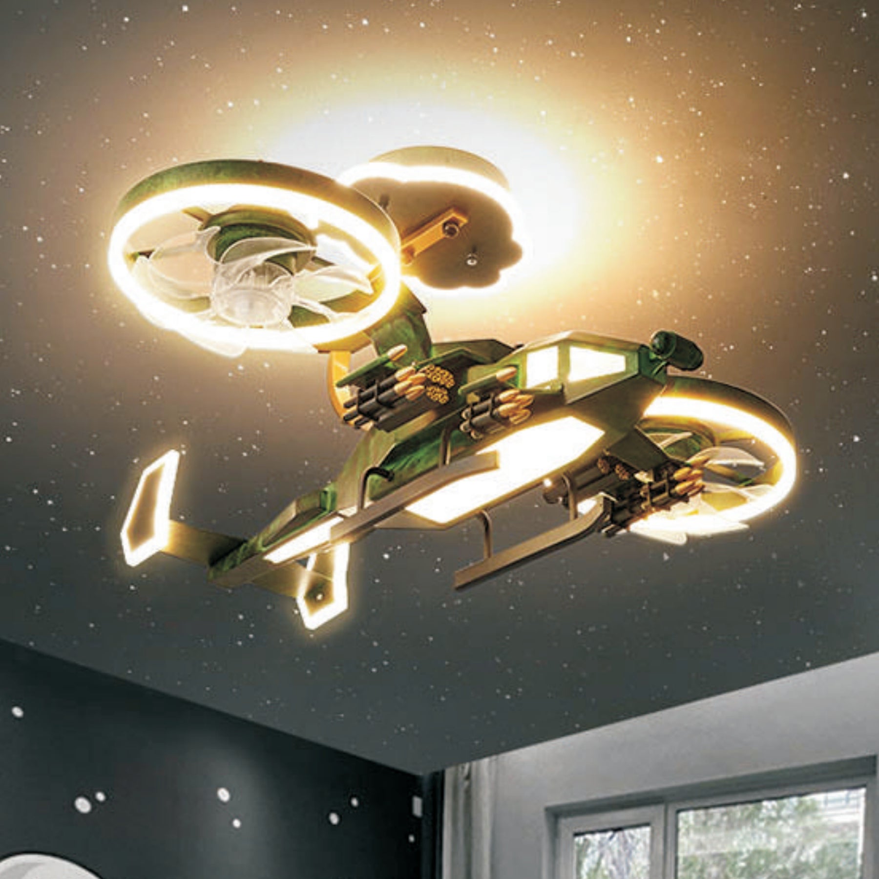 Add some playful and colorful vibes to your child's room with our LED fan light! This LED fan light features a cool helicopter design and comes with a remote control for easy color and brightness changes. Quiet fans offers a good sleep for your child. We use high quality parts with this light, it offers a safe and easy installation and a long lifespan. Plus, enjoy 3 years of worry-free use with our warranty.